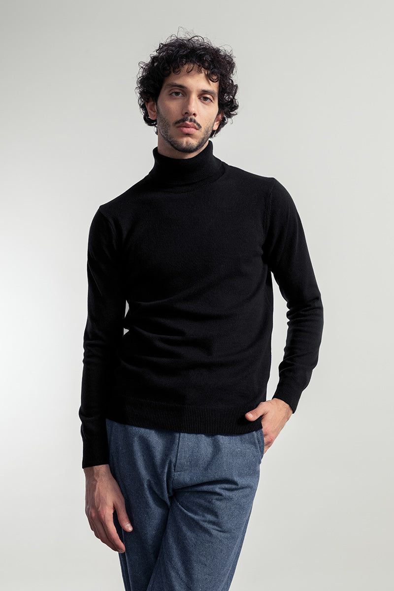 Feinstrick-Rollkragenpullover – Rifo (Schwarz)