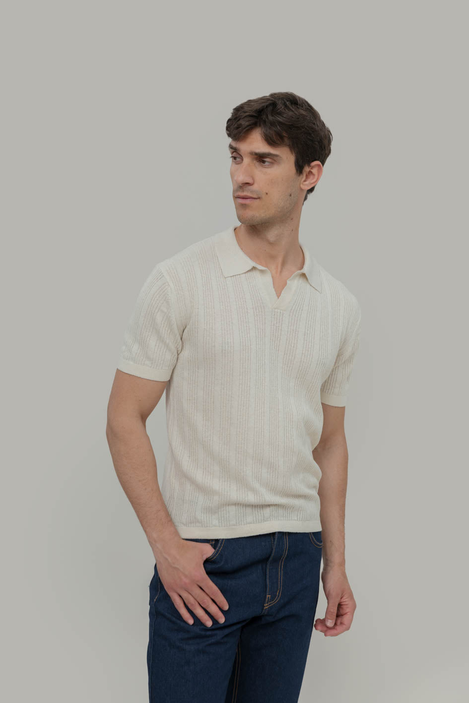 Seiden-Poloshirt – Rifo (Natur)