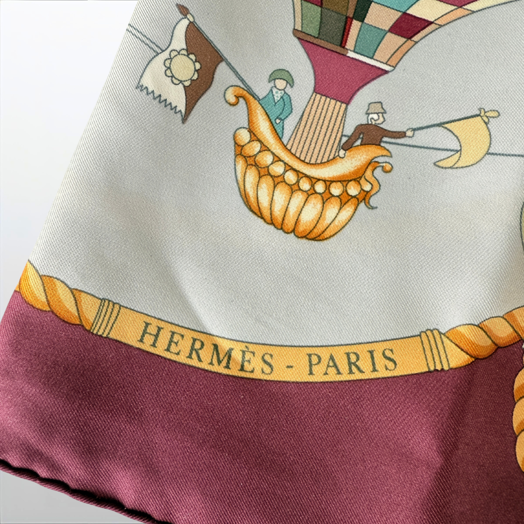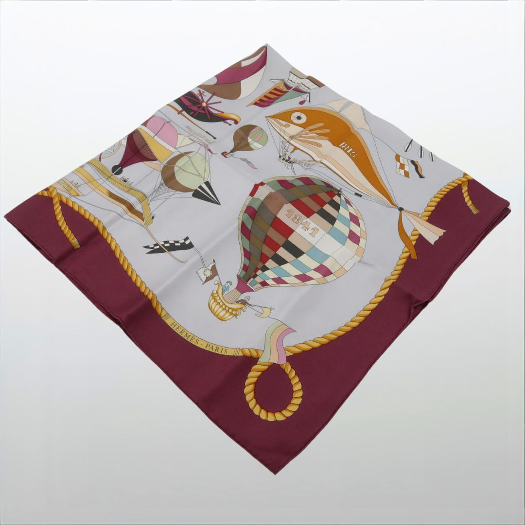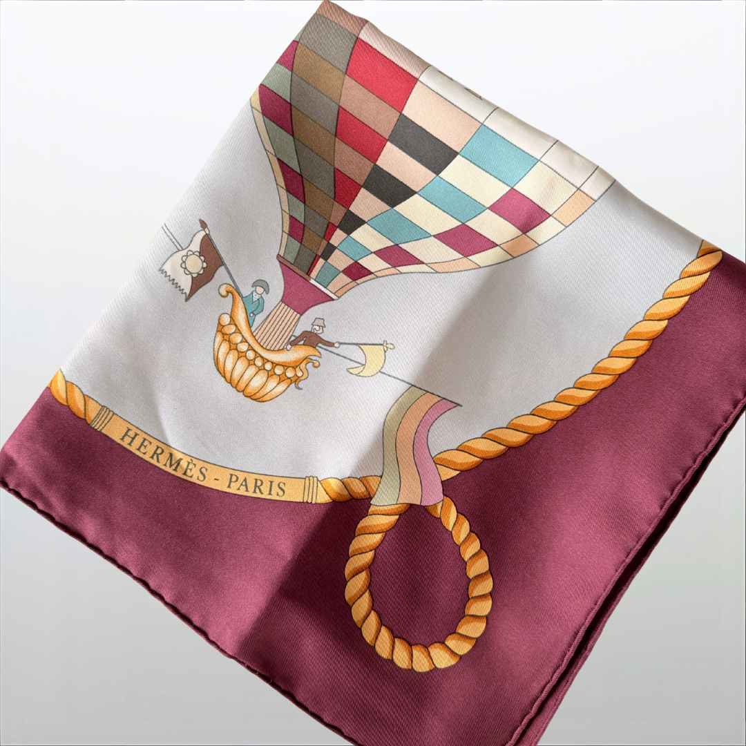Seidenschal – CARRE von Hermès (Gebraucht, Dunkelrot/Ballons)