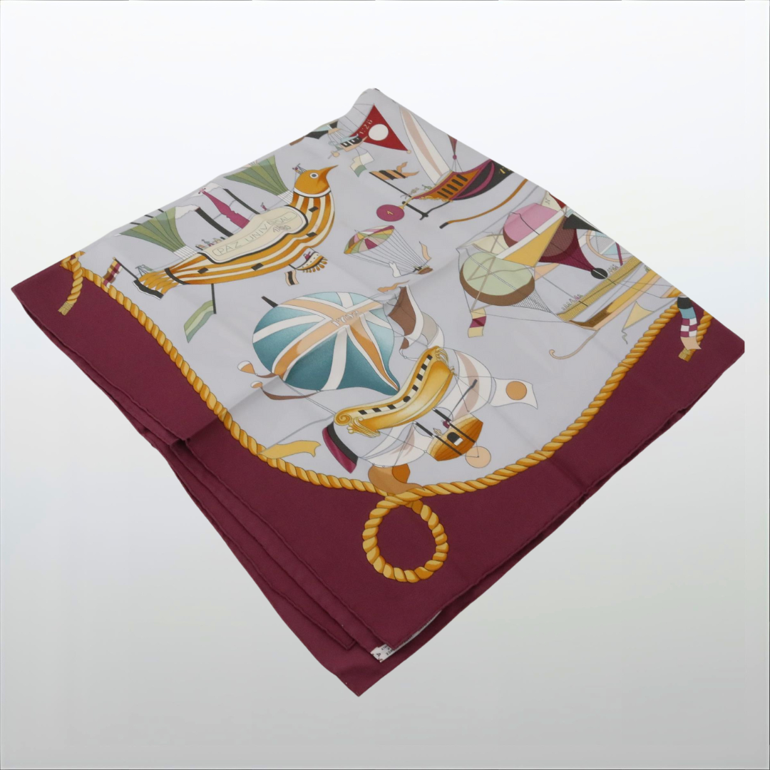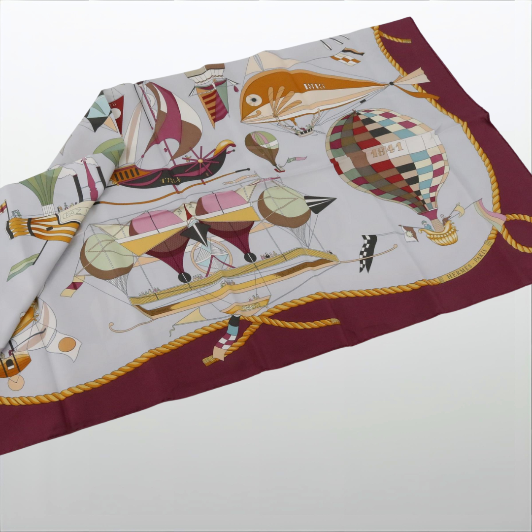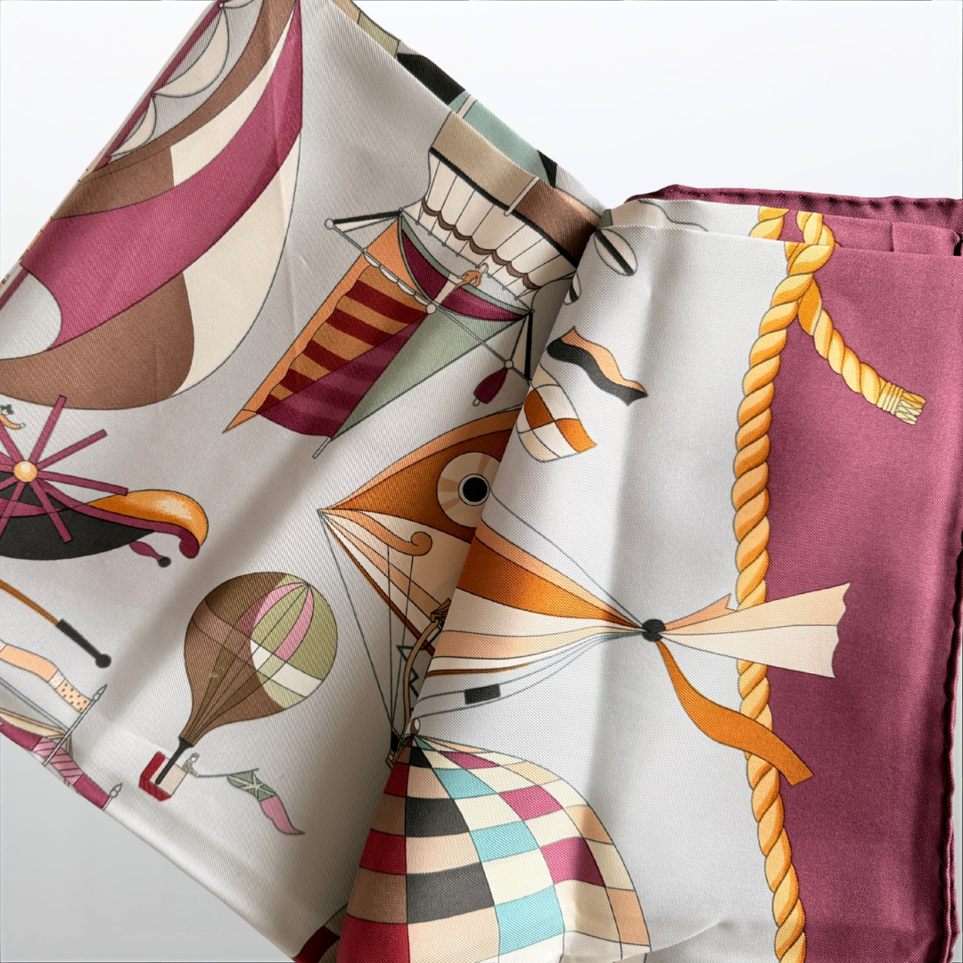 Seidenschal – CARRE von Hermès (Gebraucht, Dunkelrot/Ballons)