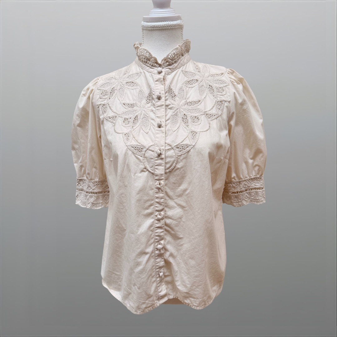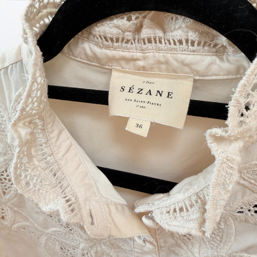 Puffärmel-Spitzentop – Sézane (Secondhand, Off-White)