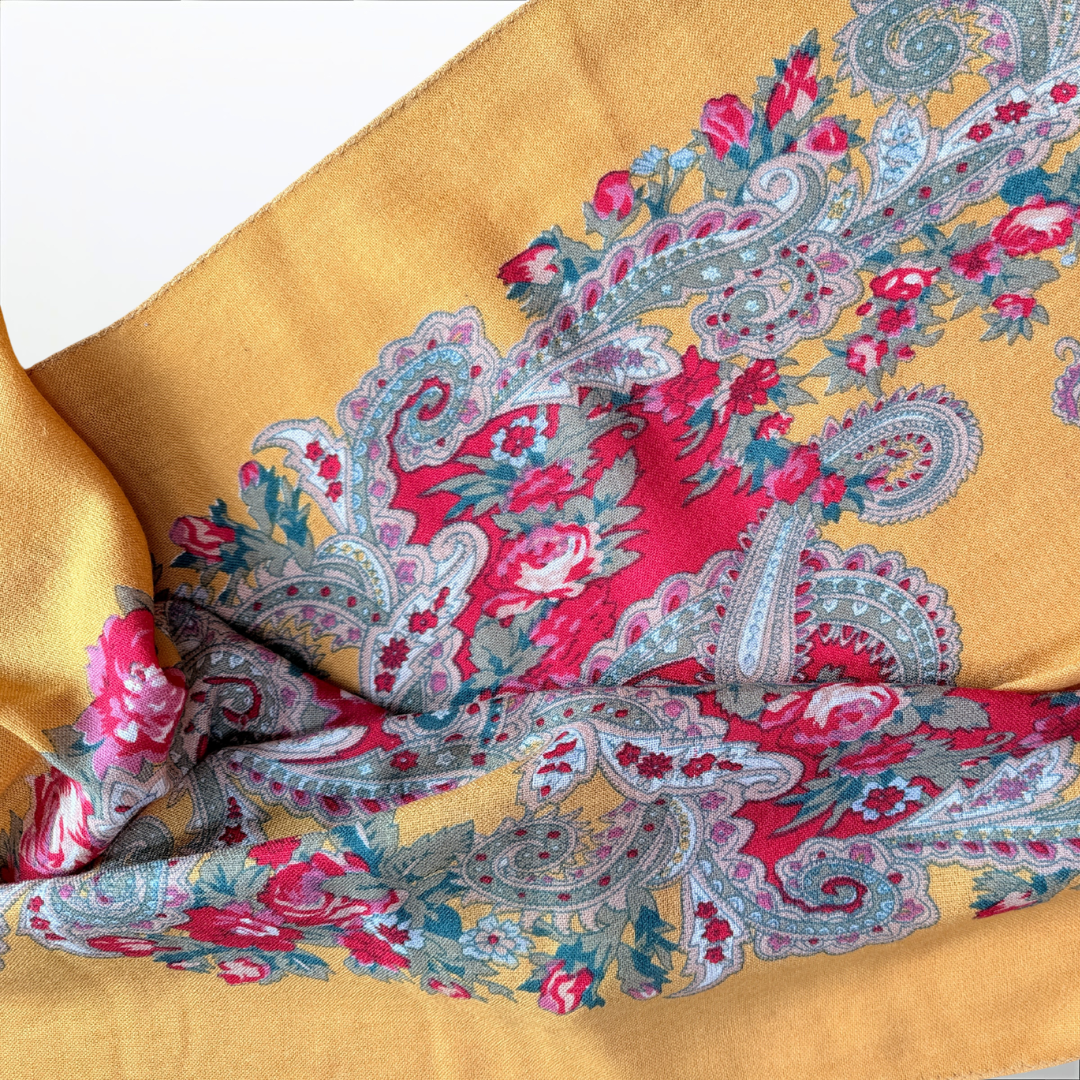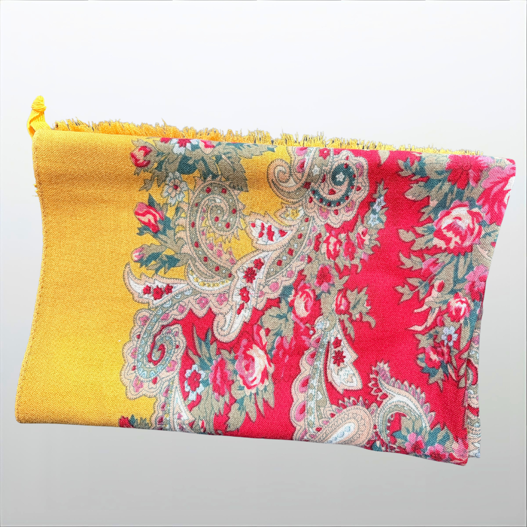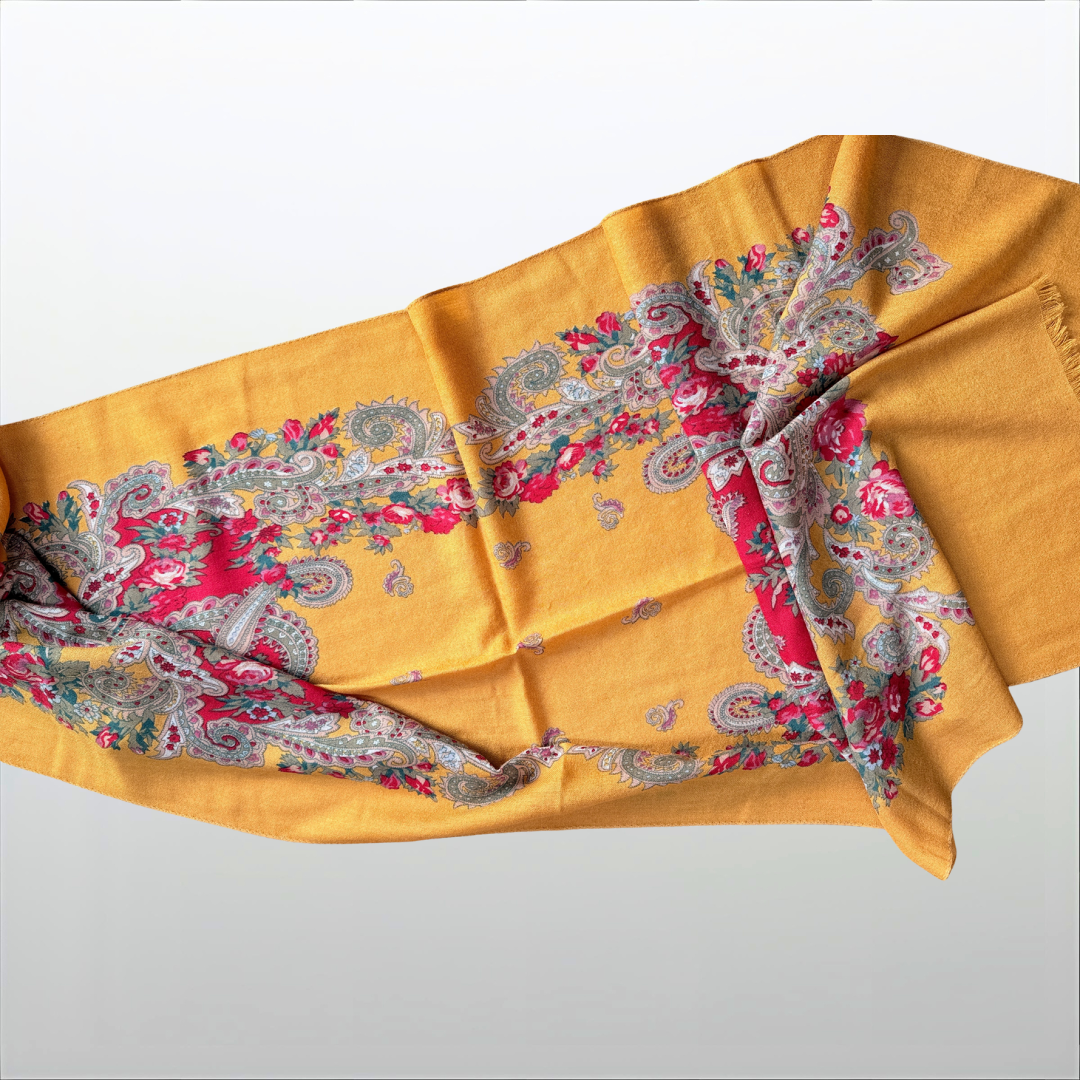 Wollschal mit Blumenmuster – Massimo Dutti (Gebraucht, Senfgelb/Blumenmuster)