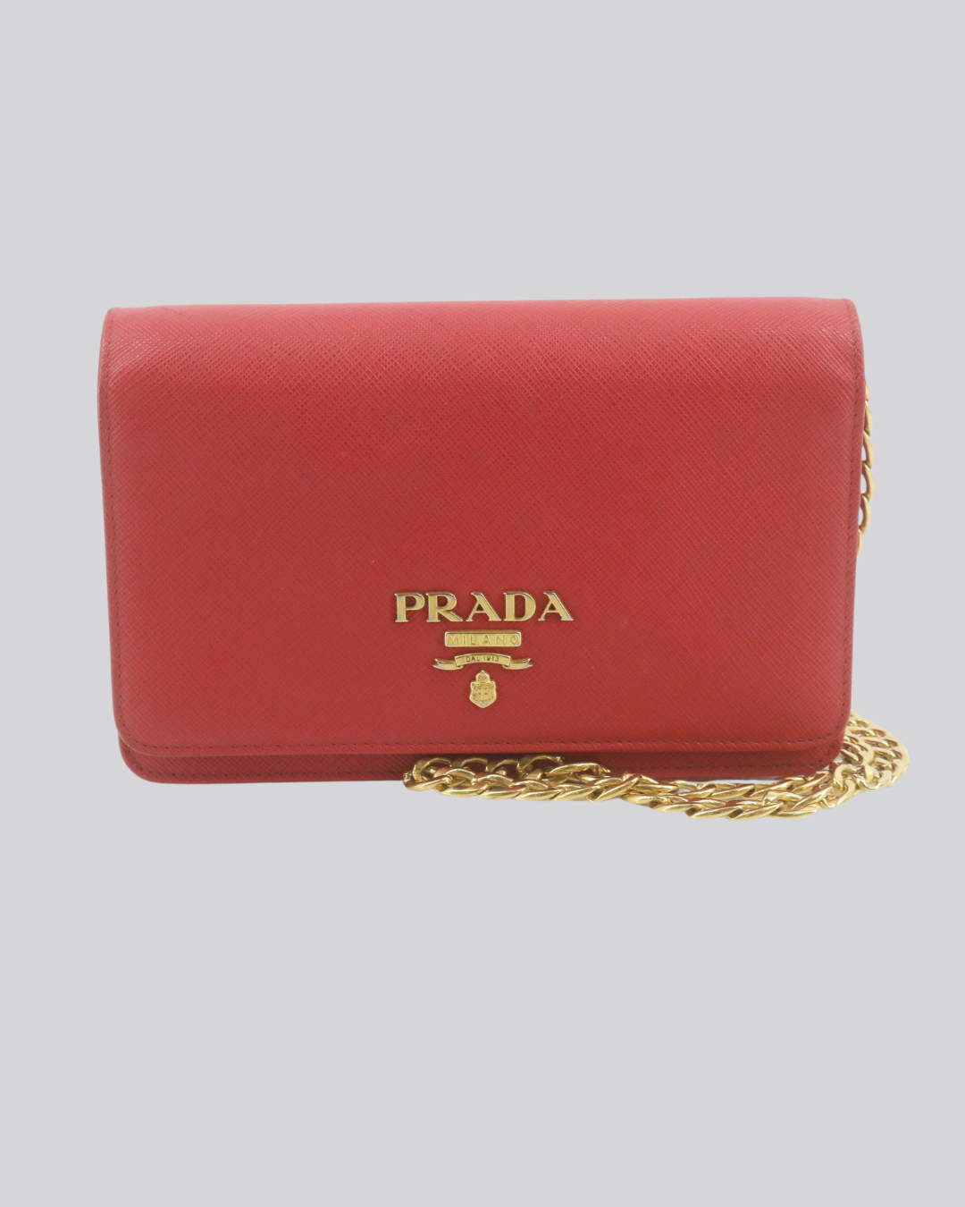 Saffiano-Kettengeldbörse - Prada (Gebraucht, Koralle)