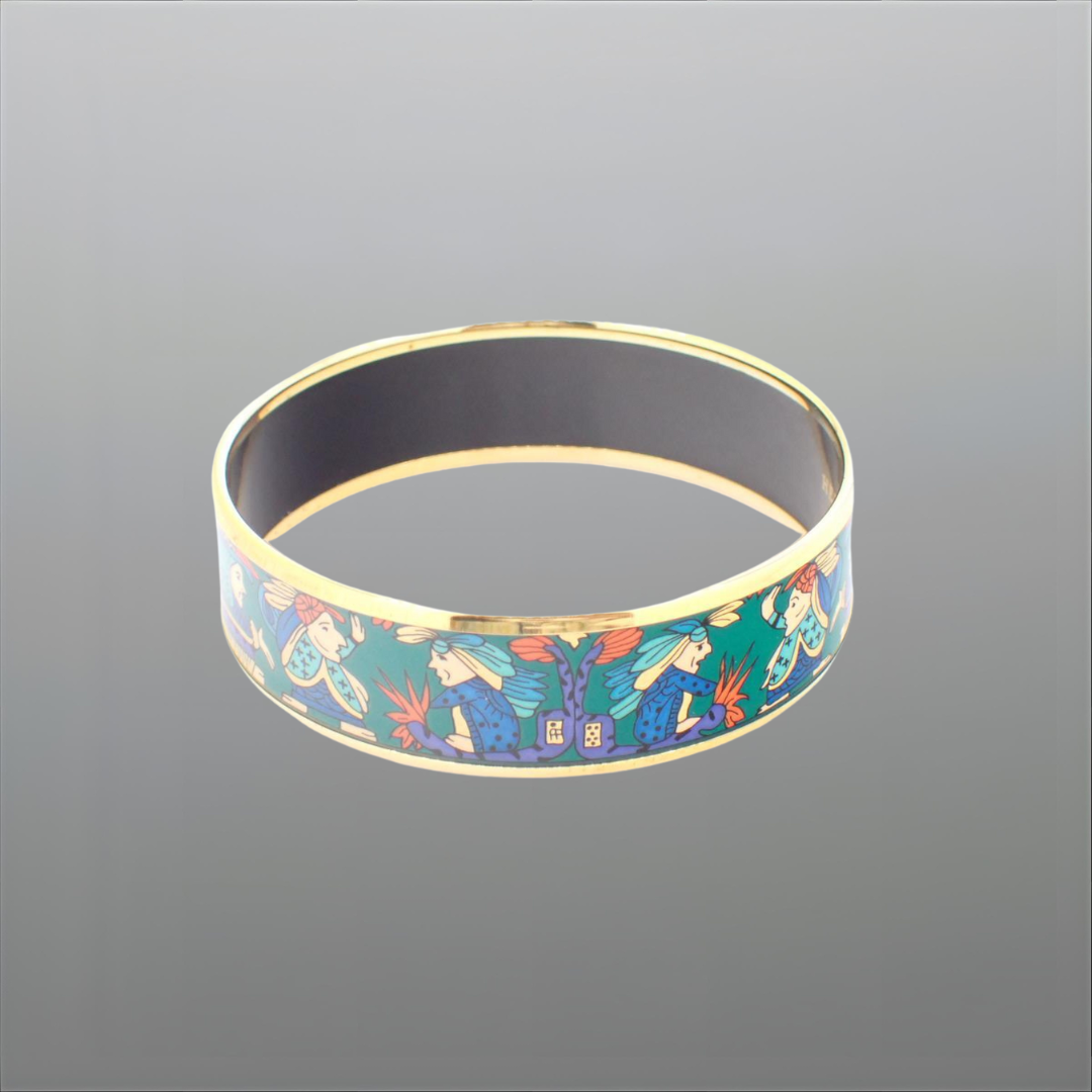 Breiter Armreif aus bedrucktem Emaille - Hermes (Gebraucht, Mehrfarbig)