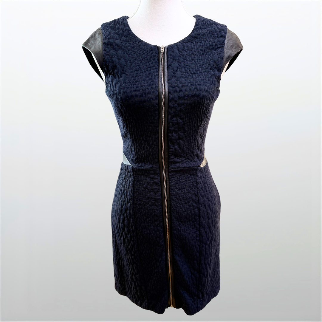 Strukturiertes Kleid mit Kunstlederdetails – The Kooples (Secondhand, Marineblau/Schwarz)