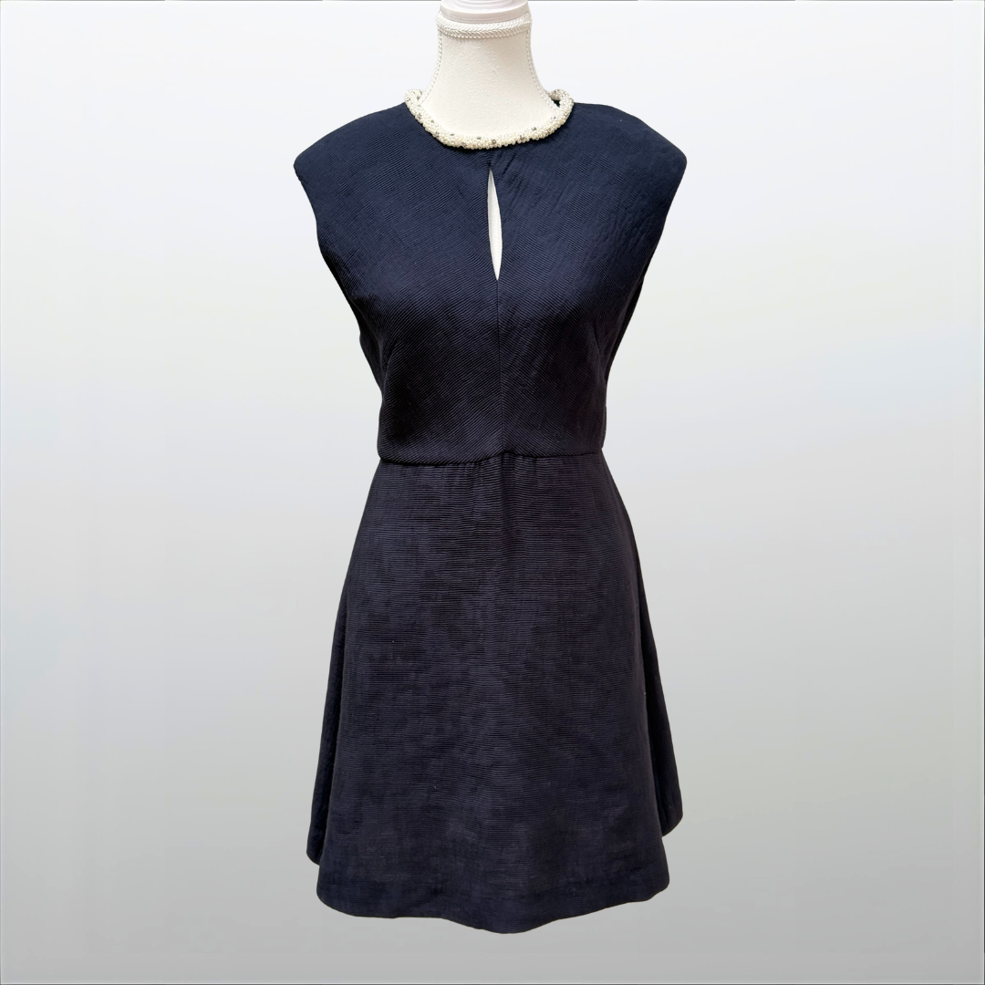 Strukturiertes Kleid mit Perlen – Sandro (Secondhand, Marineblau)