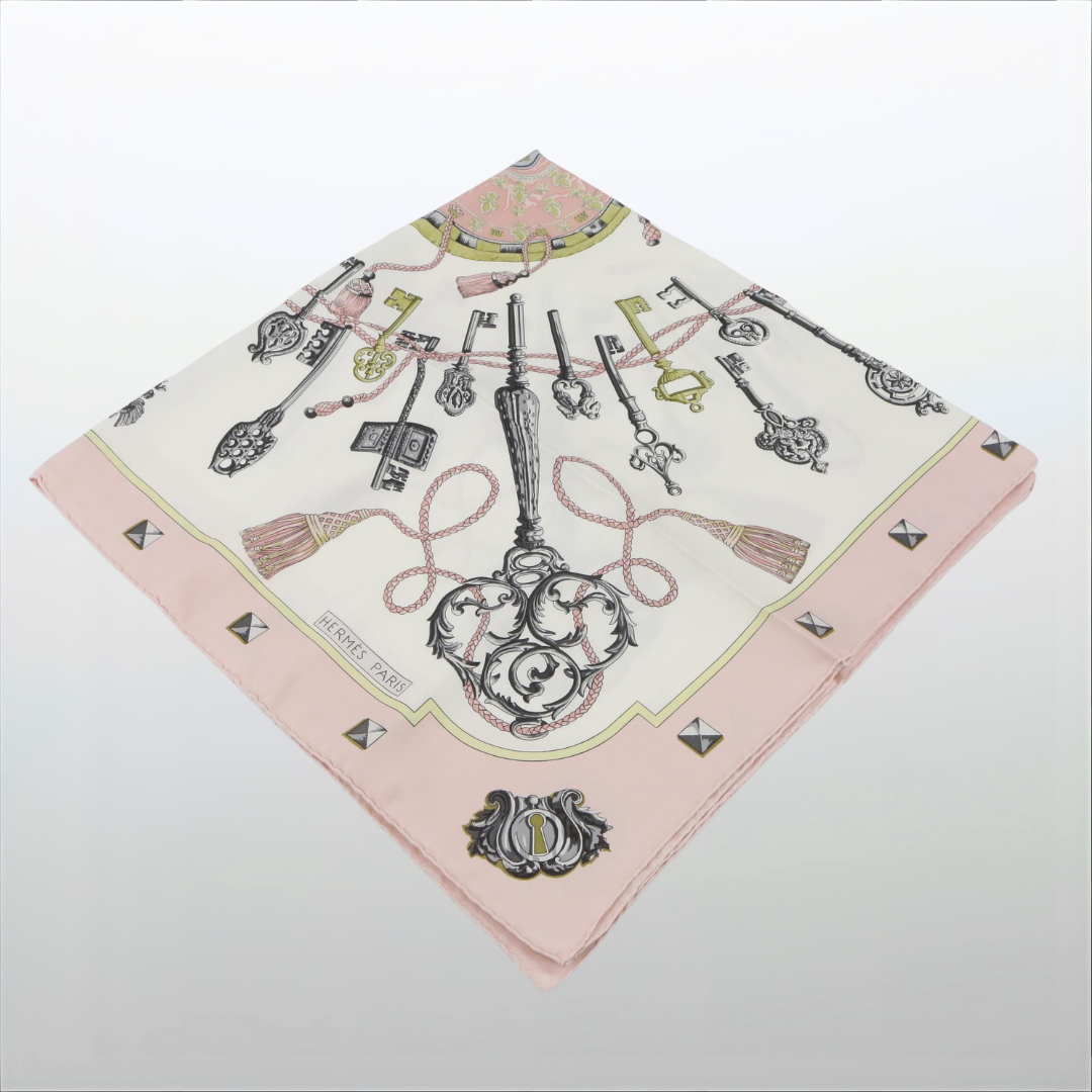 Seidenschal – CARRE von Hermès (Gebraucht, Hellrosa/Silberne Schlüssel)