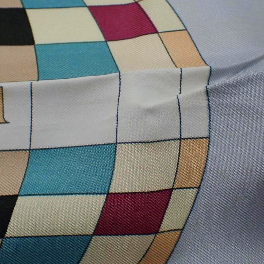 Seidenschal – CARRE von Hermès (Gebraucht - Grau, Gold, Rot)