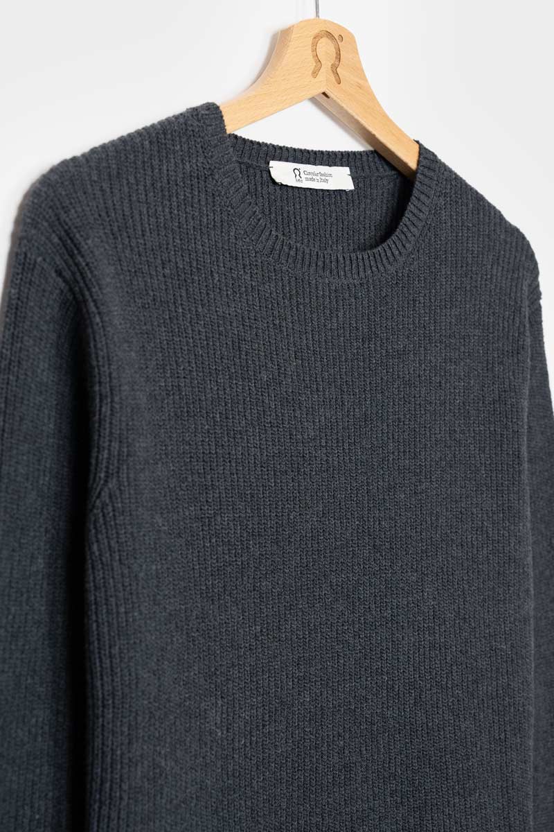 Cozy with a contemporary cut. Rifo’s Olga cropped sweater in anthracite is knitted from recycled yarns for a soft, structured finish that layers effortlessly.