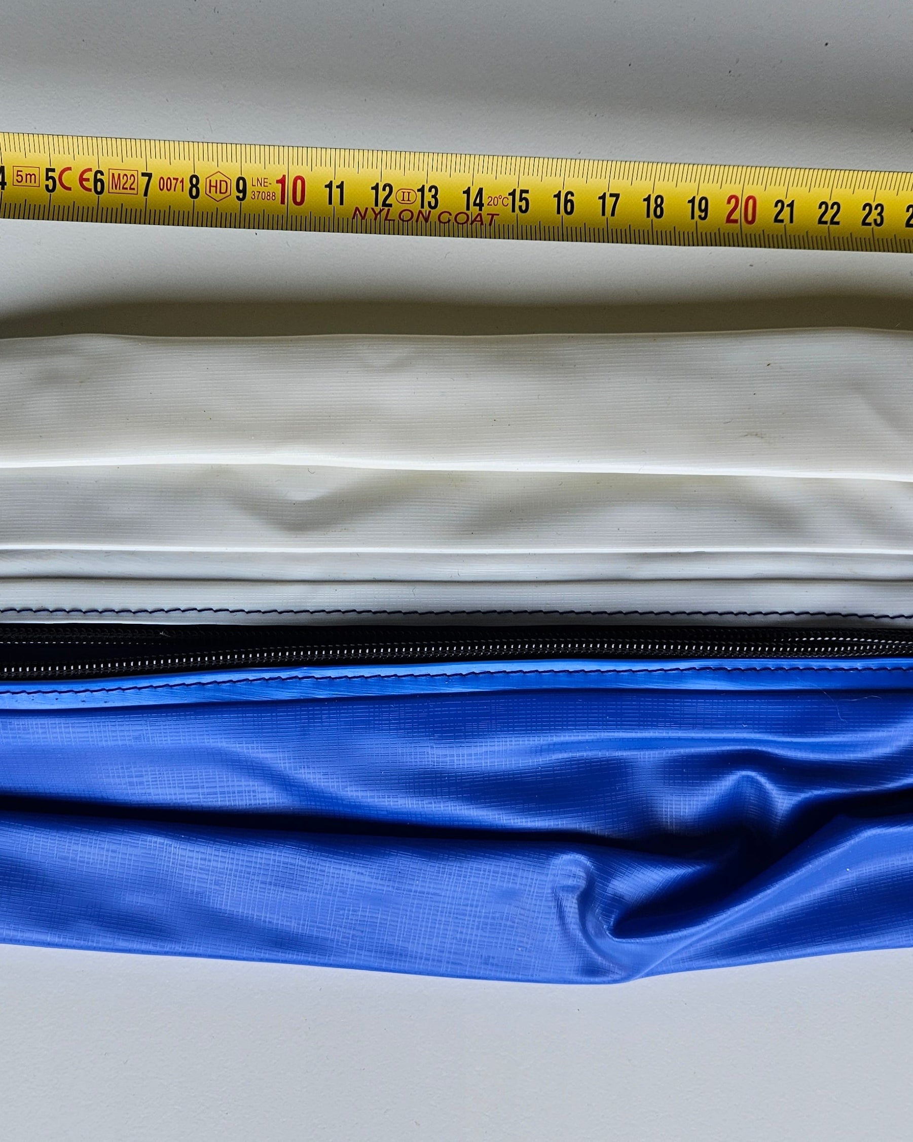 Stellen Sie sich mit geschlossenen Füßen hin. Messen Sie an der breitesten Stelle Ihrer Hüfte/Ihres Gesäßes (normalerweise 18–23 cm unterhalb der Taille), wobei das Maßband waagerecht verlaufen sollte.